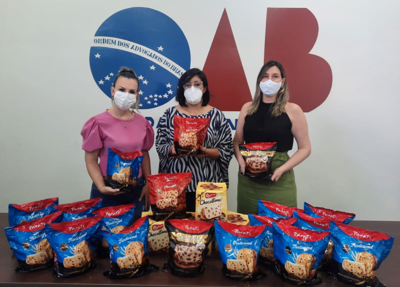 As advogadas sensibilizadas com a proposta da campanha se uniram e conseguiram dezenas de Panetones que foram entregues pela Dra. Renata A. Mozzini Silva Pinto, presidente da comissão da mulher advogada e a Dra. Ana Carolina Parra Lobo primeira secretária da comissão de ação social da OAB Adamantina.