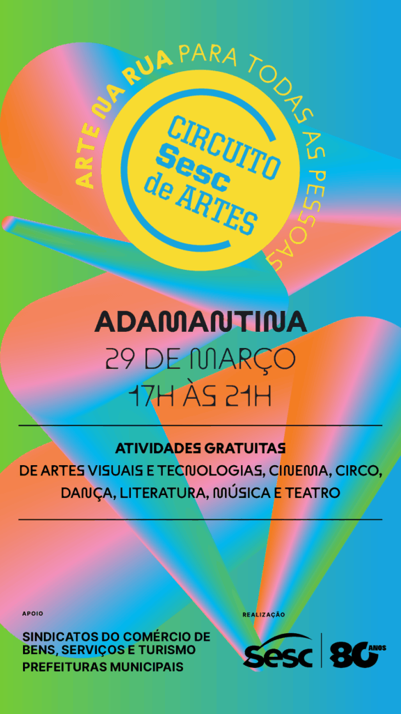 Adamantina recebe neste mês o Circuito Sesc de Artes, projeto realizado pelo Sesc São Paulo, com apoio dos sindicatos do comércio de bens, serviços e turismo e das prefeituras municipais, que movimenta 133 cidades do interior, do litoral e da Grande São Paulo entre 21 de março e 26 de abril.