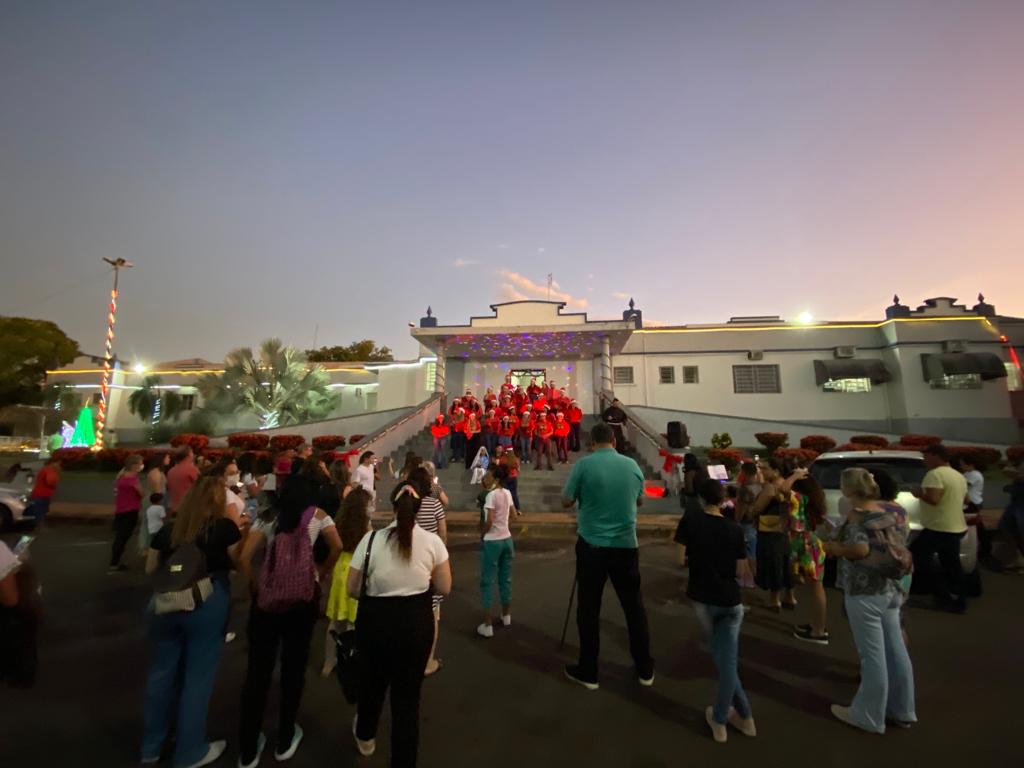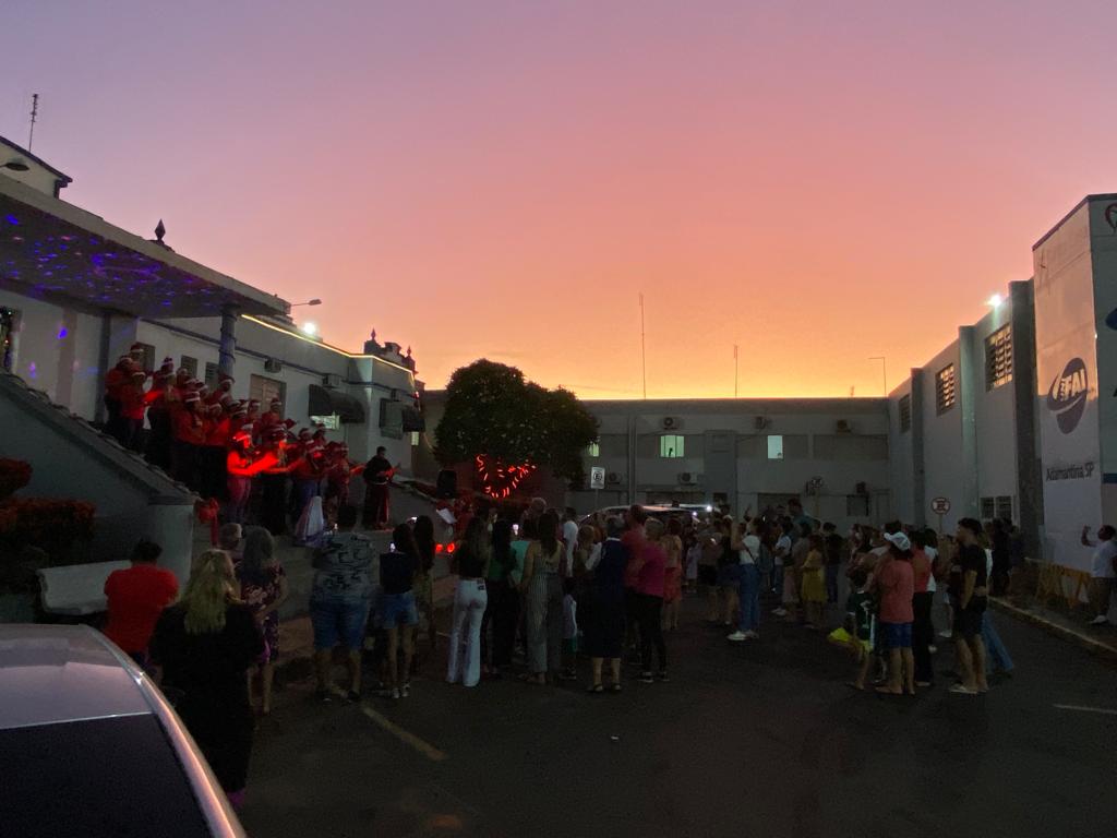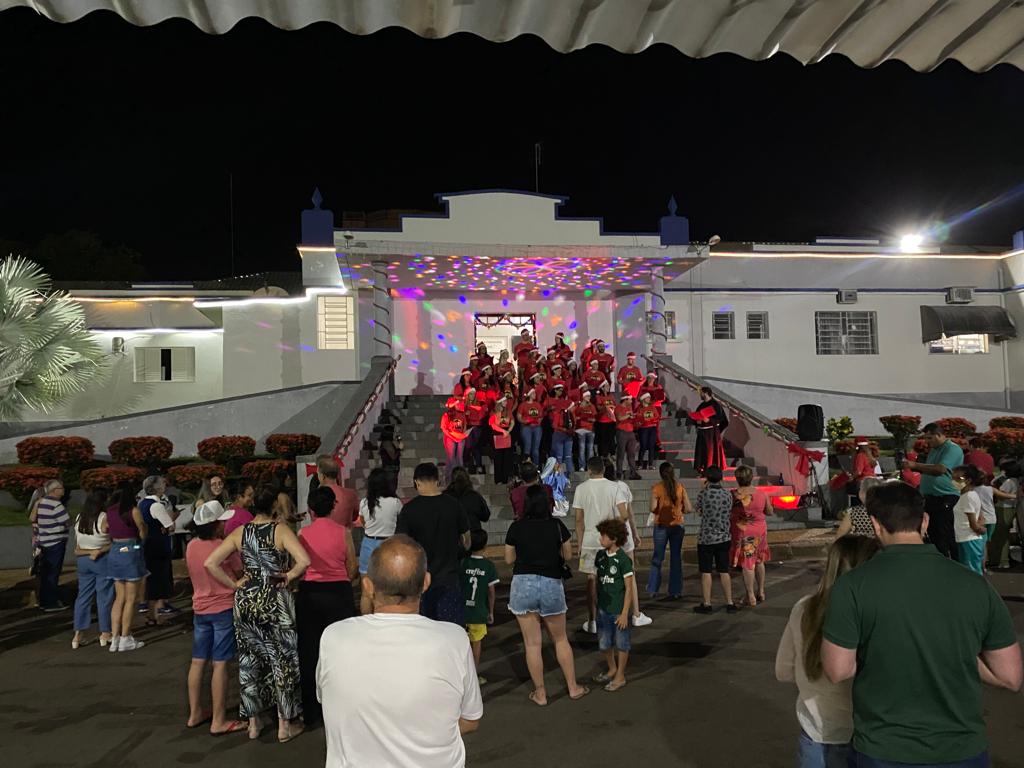 A apresentação do coral da Santa Casa de Adamantina foi realizada na noite de 22/12 nas escadarias que dão acesso à Santa Casa.