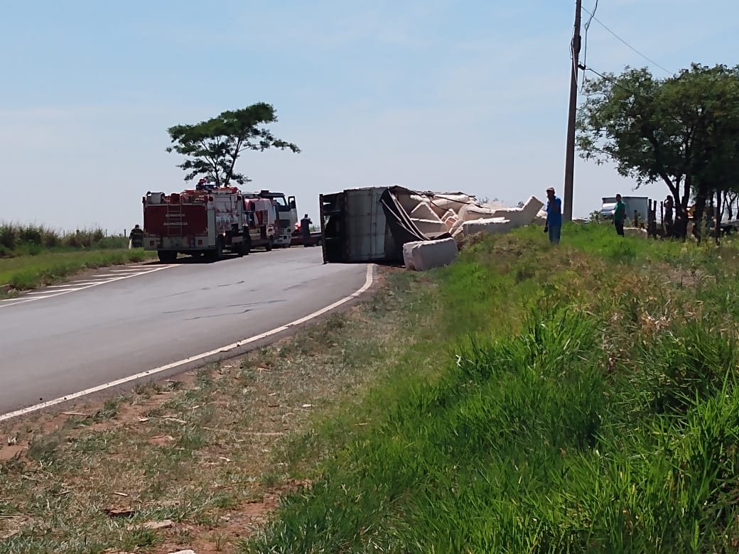 Ainda segundo informações, o veículo carregado seguia sentido Lucélia – Flórida Paulista, quando o motorista acabou perdendo o controle da direção, saiu da pista e capotou no acostamento.