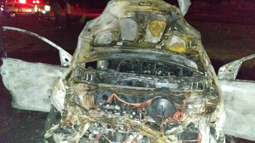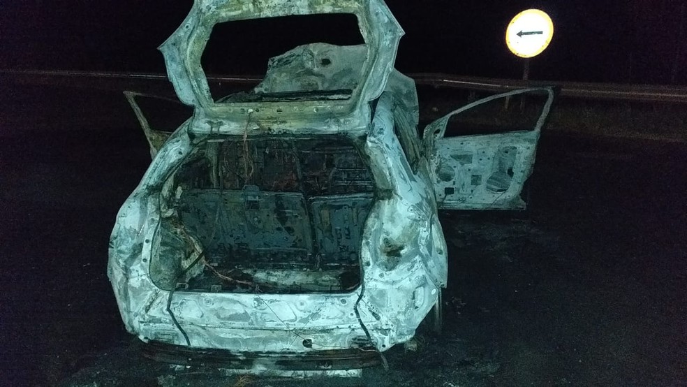 Um carro pegou fogo e ficou destruído depois de uma batida na Rodovia Assis Chateaubriand (SP-425), em Parapuã (SP). O acidente foi registrado no início da noite desta quarta-feira (2).