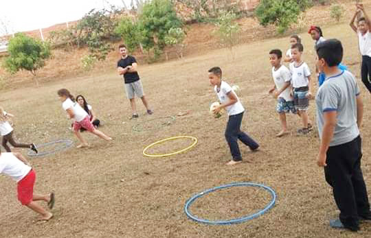 Crianças durante projeto esportivo, sob orientação do profissional Alan Calori