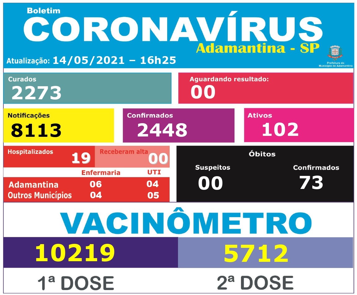 Ainda segundo informações da Vigilância Epidemiológica, esses dados são referentes ao dia 13 maio.