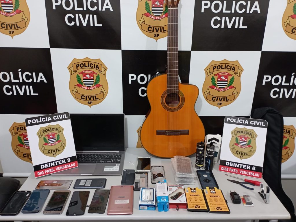 Na tarde deste sábado (08/04), a Polícia Civil, por meio da Delegacia de Polícia de Investigações Gerais (DIG), com o apoio da Delegacia de Polícia de Investigações Sobre Entorpecentes, recuperou cerca de 30 aparelhos celulares, 2 notebooks, (sendo um da marca Apple/ Macbook), além de outros objetos, tais como, cabos de dados, películas, baterias e carregadores. Os objetos haviam sido furtados na madrugada do dia 08/04, de um estabelecimento comercial, situado no Centro de Presidente Venceslau. Após o registro da ocorrência, policiais da DIG iniciaram a investigação, chegando a uma residência, onde parte dos objetos estavam escondidos. No imóvel, habitado por uma mulher (T.S.S.S., 28 anos), os Policiais Civis encontraram dentro de uma mochila, vários telefones celulares e um notebook da maca Apple, modelo Macbook. A seguir, os Policiais Civis conseguiram identificar e descobrir o paradeiro do furtador (A.F.A., 37 anos), sendo que com o auxílio dos Policiais Militares do Comando de Força Patrulha do 42º BPM-I, dirigiram-se a um motel, localizado numa das saídas da cidade, onde o autor estava escondido. Em poder dele foram localizados mais telefones celulares, um violão, além de outro notebook, da marca Samsung, também subtraídos do mesmo estabelecimento. Os bens foram arrecadados e no Plantão Central da Polícia Civil, em Presidente Venceslau, foram apreendidos, reconhecidos e entregues à vítima. Todos os envolvidos foram ouvidos e em seguida liberados, pois não mais caracterizado o estado flagrancial, mas responderão pelos crimes de furto qualificado e favorecimento real, em liberdade.