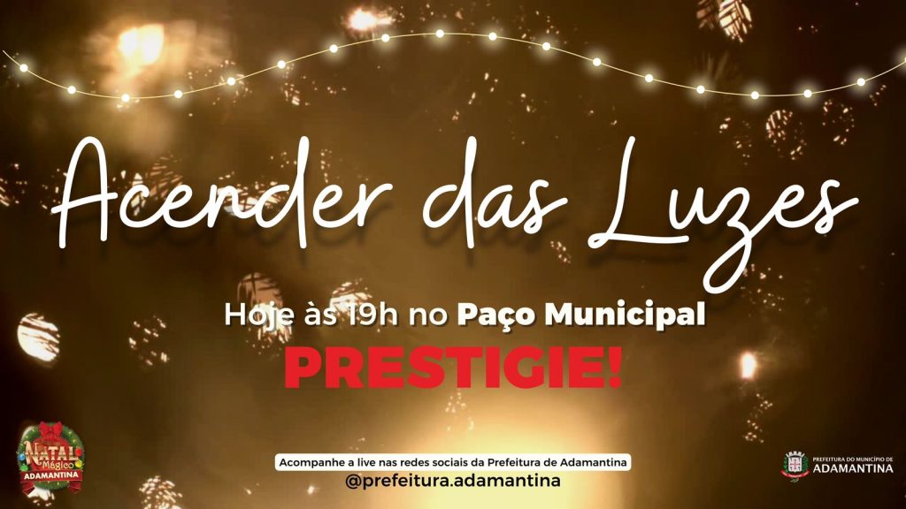 Hoje (16), a partir das 19h, Adamantina será iluminada com o “Acender das Luzes de Natal”, a cerimônia oficial acontecerá no Paço Municipal.