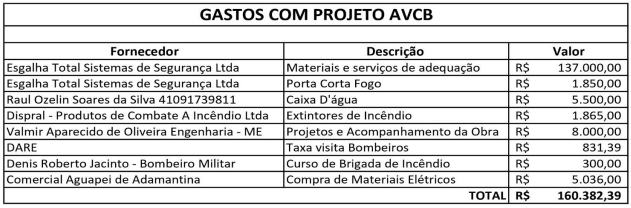 Os investimentos realizados pela Clínica, para a regularização das instalações para a obtenção do AVCB somam R$ 160.382,39. Veja o detalhamento das despesas e materiais adquiridos: