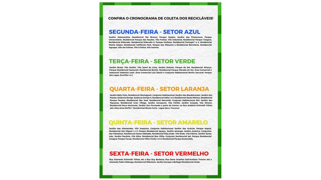 Confira abaixo o cronograma de coleta