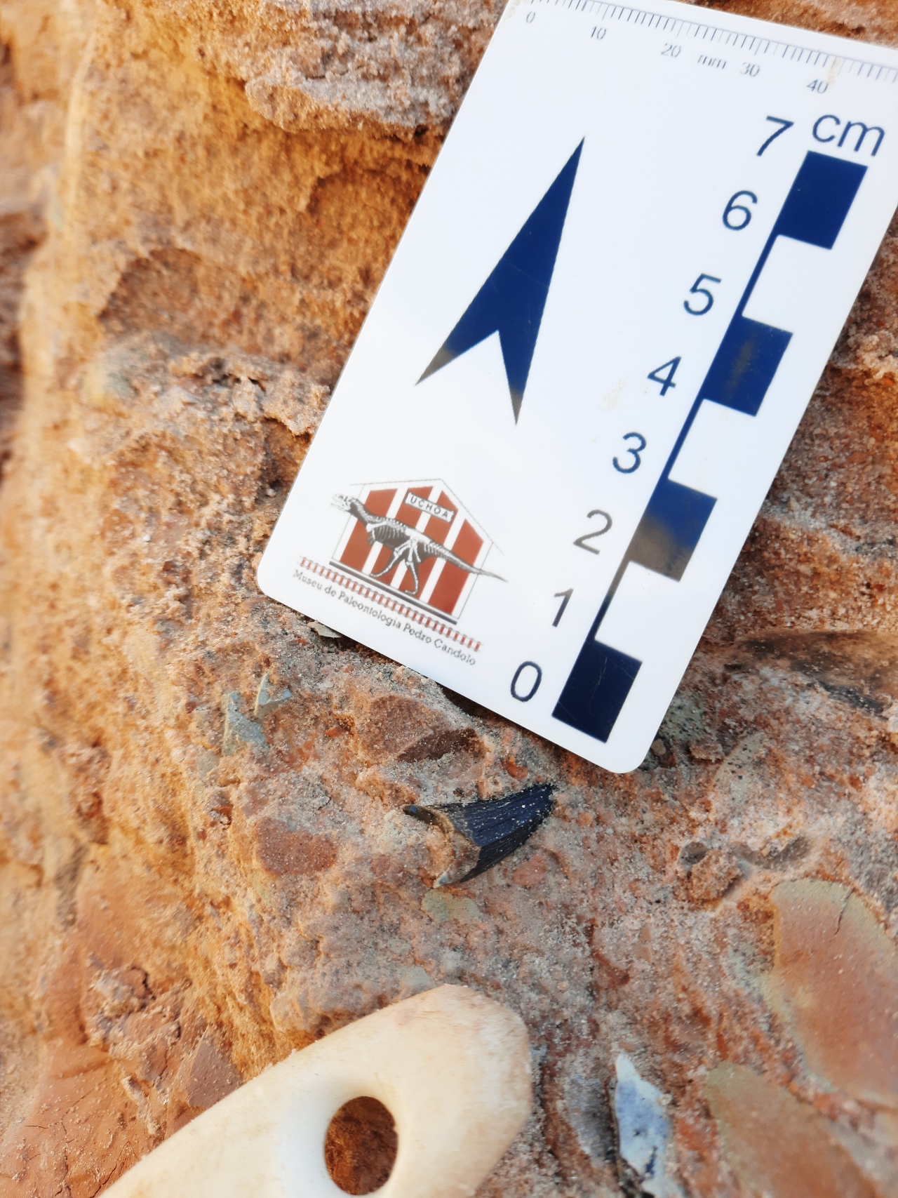 Entre as dezenas de fragmentos fósseis encontradas estão ossos dos gigantes titanossauros – os dinossauros “pescoçudos”, quadrúpedes e herbívoros que podiam alcançar por volta de 20 metros – e dentes isolados de abelissaurídeos, dinos predadores bípedes, que chegavam a até nove metros de cumprimento.