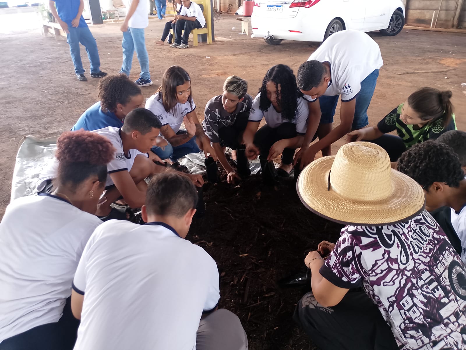 Na sequência, acompanhados pelo Técnico Rodrigo Shioda, os alunos também puderam realizar o plantio de mudas nativas, que oportunamente serão utilizadas na revitalização de uma área de preservação permanente (APP) do município.