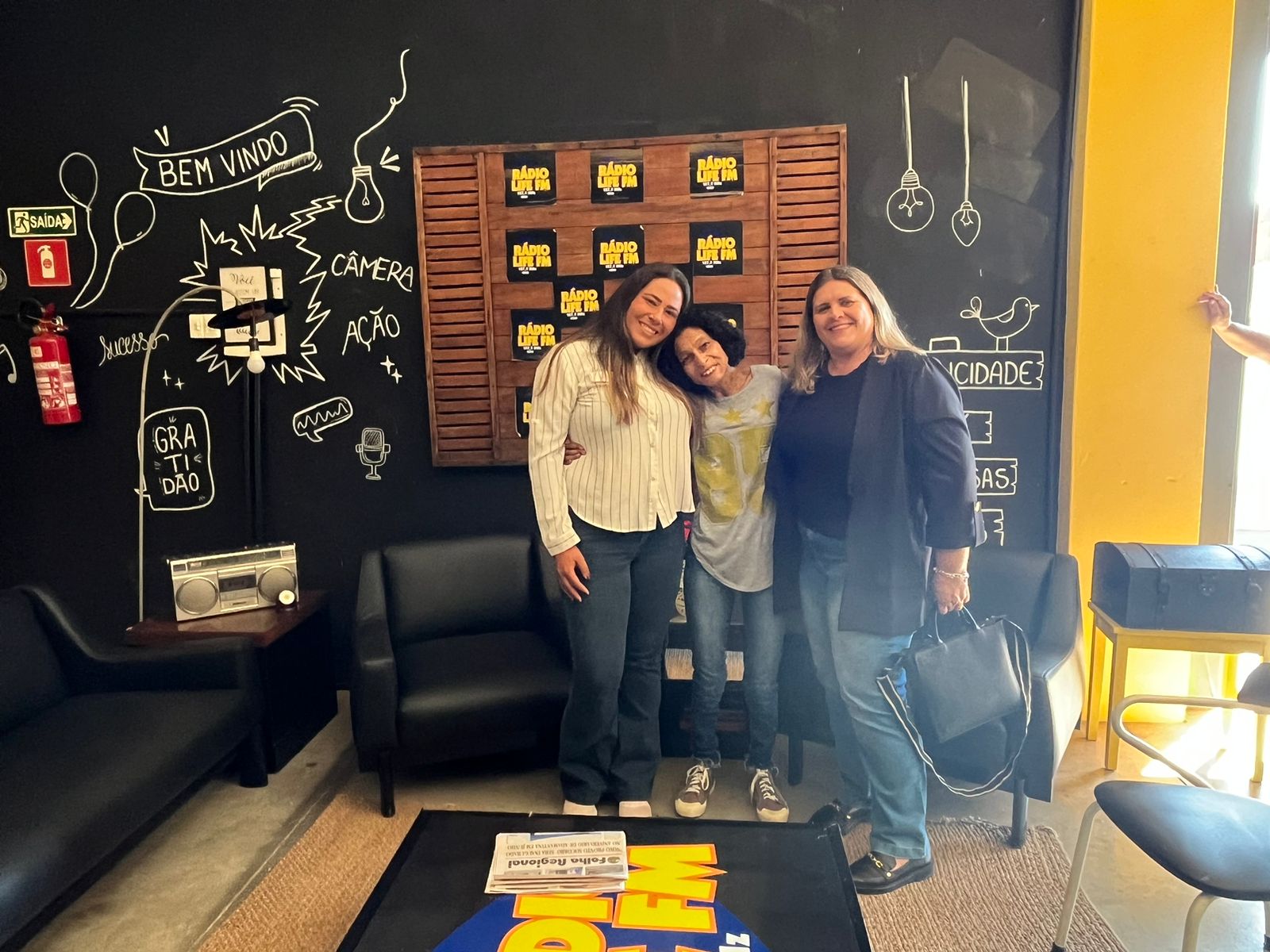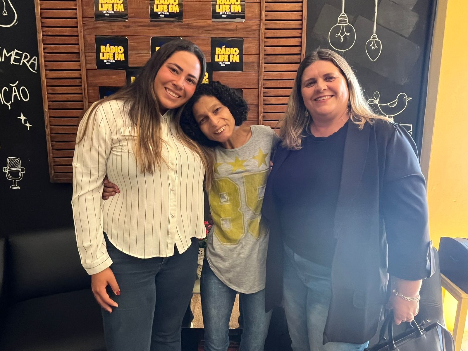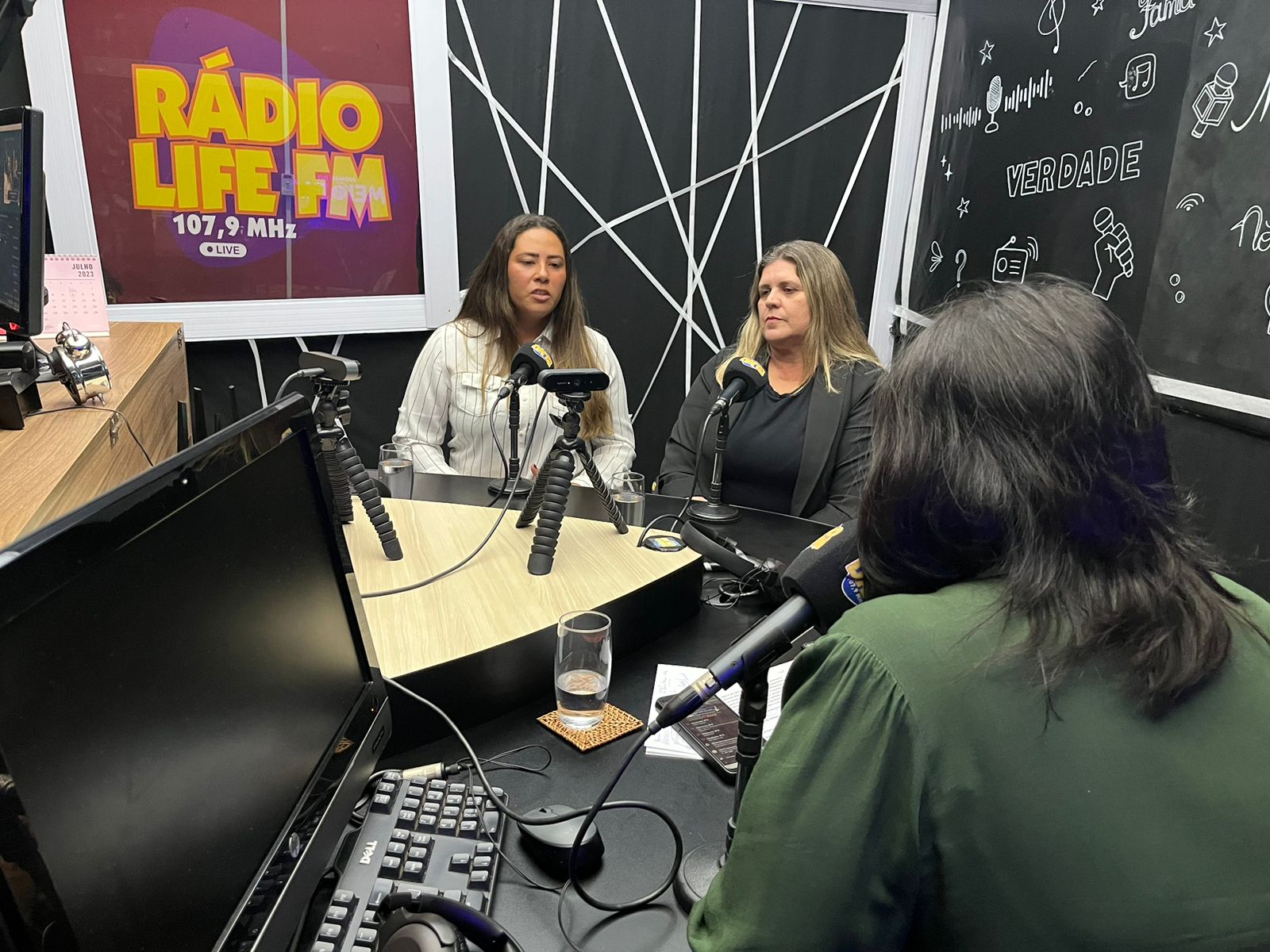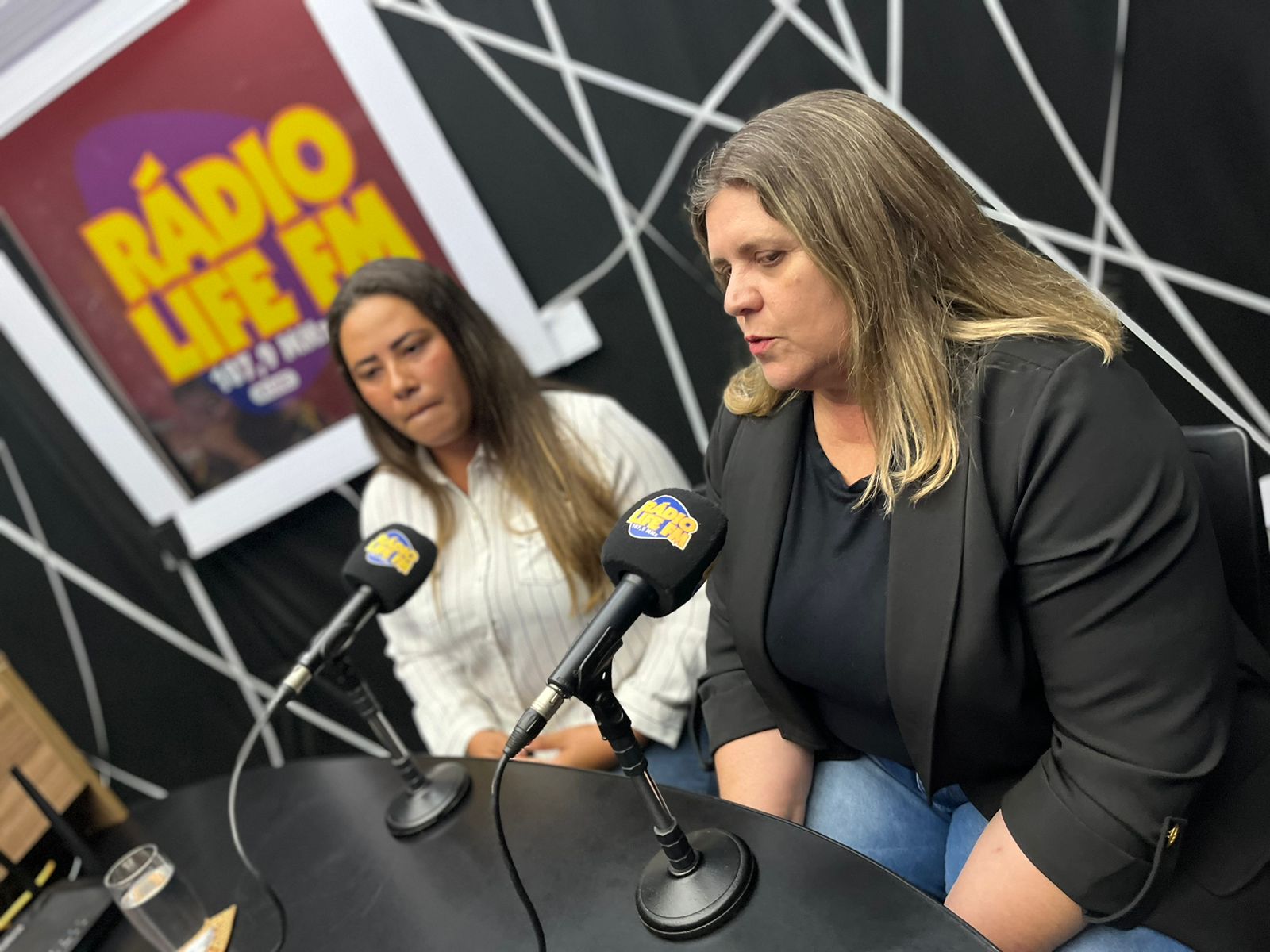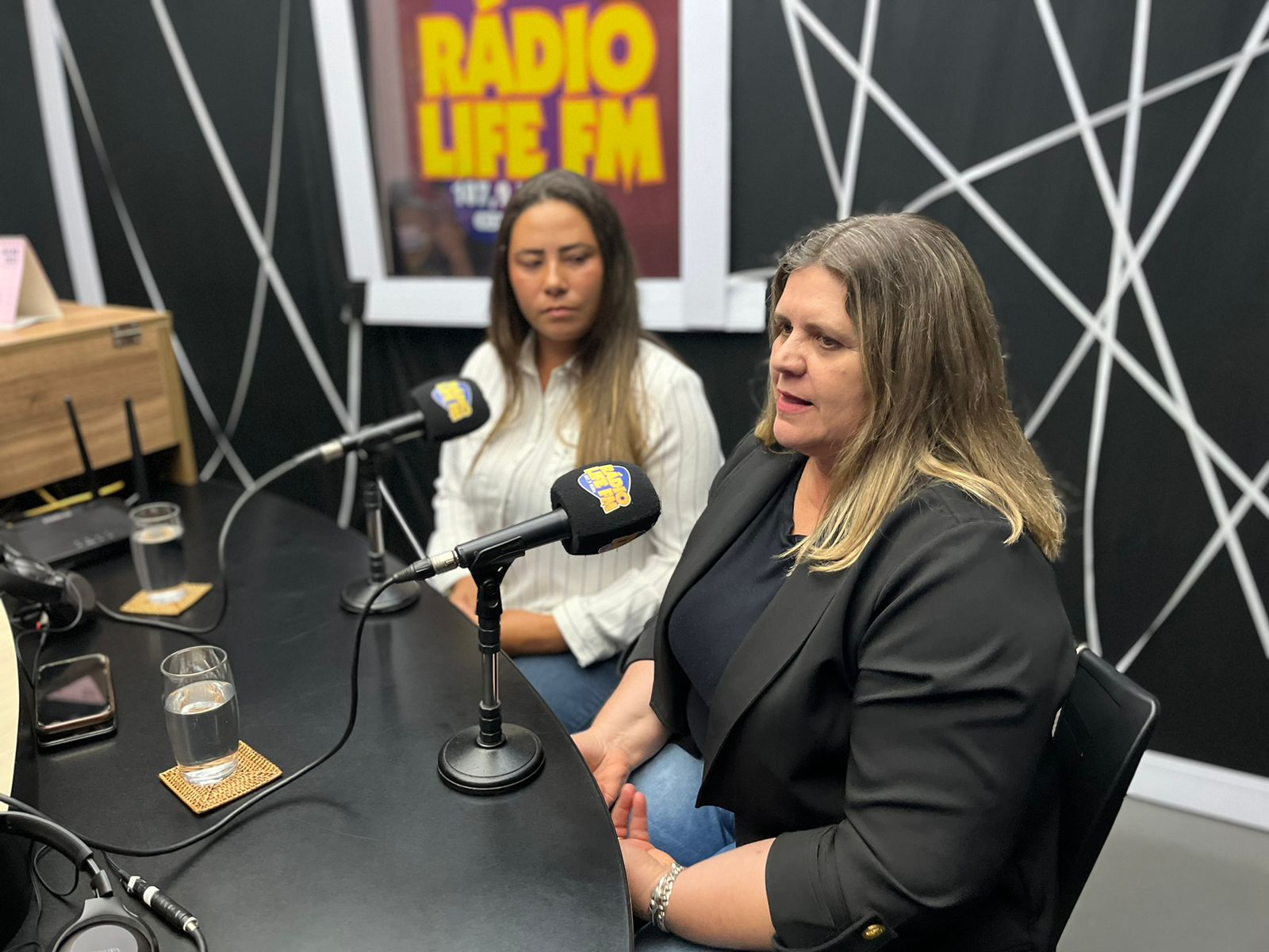 Erica Grespi Maião e Ana Carolina dos Santos no Jornal do Meio-Dia, da Rádio Life FM.