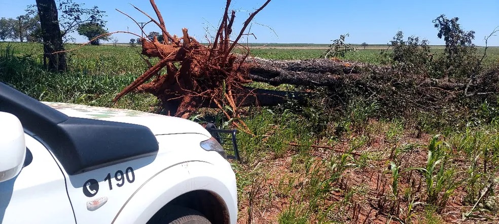 De acordo com a Polícia Militar Ambiental, os policiais foram até uma fazenda para atender uma denúncia de degradação ambiental e, no local, foi constatada a supressão de 172 árvores em área comum, com o uso de uma retroescavadeira e de um trator com pá carregadeira para arrancar e enterrar as árvores.