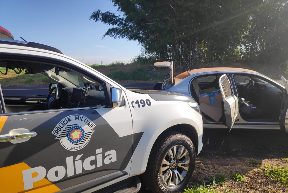 Durante o desenvolvimento da Operação Toque de Restrição, o policiamento rodoviário abordou um carro, com placas de Presidente Bernardes (SP), e na vistoria veicular localizou no porta-malas diversas mercadorias oriundas do Paraguai, sem a devida documentação fiscal.