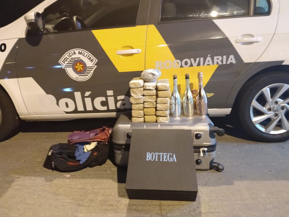 A Polícia Militar Rodoviária apreendeu três garrafas com cocaína líquida, 18 tabletes de maconha e uma porção de Skank, durante uma abordagem na Rodovia Raposo Tavares (SP-270), em Presidente Venceslau.