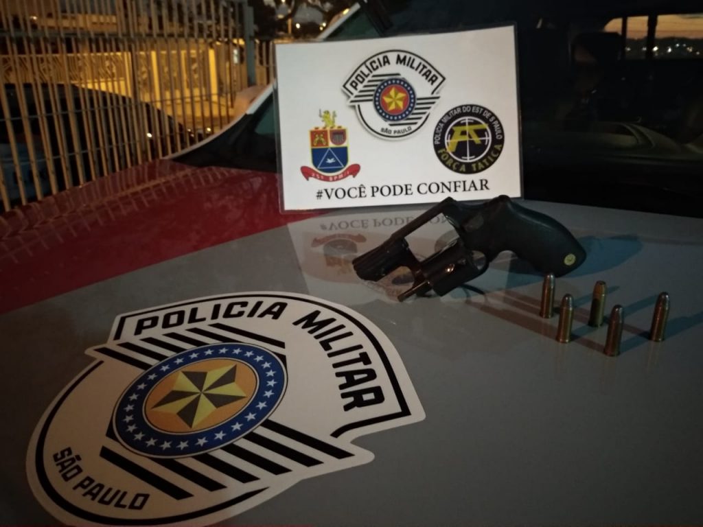 Foi realizado buscas , sendo localizado interior do veículo, sob o banco do passageiro, um revólver calibre 38, municiado com 5 munições intactas.