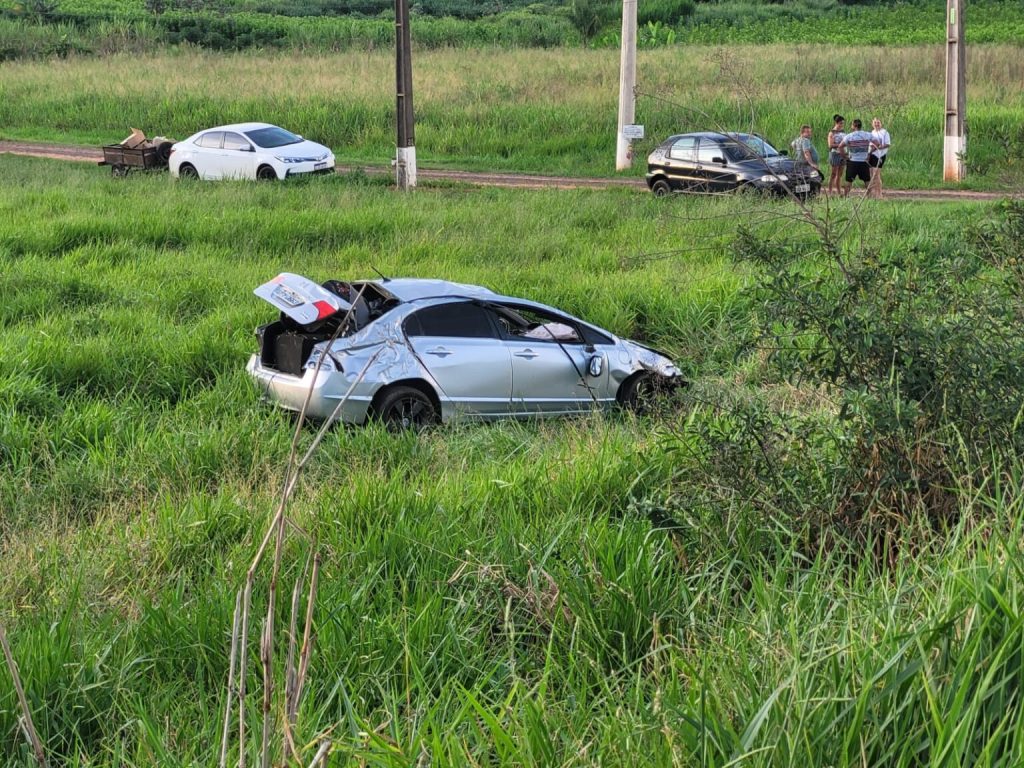 No início da noite deste domingo (29), o condutor de um veículo Honda Civic trafegava pela Rodovia Brigadeiro Eduardo Gomes, que liga os municípios Iacri e Bastos, quando por motivos a serem esclarecidos perdeu controle da direção saindo da pista e capotando além do acostamento.