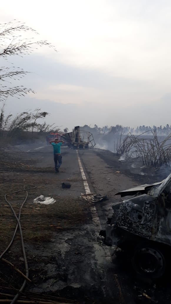 Auxiliaram no atendimento, as Equipes da 2ª Cia do 18º BPM/I, do 14º GB, UBA/DER e um Caminhão pipa da Usina de Álcool Atena.
