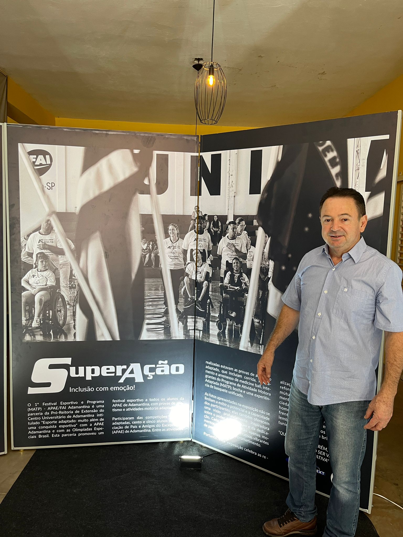 Recentemente, o Centro Universitário realizou um festival esportivo com 105 alunos da APAE, adaptando as atividades e modalidades esportivas às necessidades especiais de cada um, destacando suas eficiências e habilidades. Esse festival foi acompanhado pelo curso de Publicidade, que produziu fotos coordenadas pela fotógrafa Maila Alves. Essas fotos foram trabalhadas e se transformaram em uma exposição, composta por grandes painéis fotográficos, exibida inicialmente nos Jogos Universitários em abril de 2024.