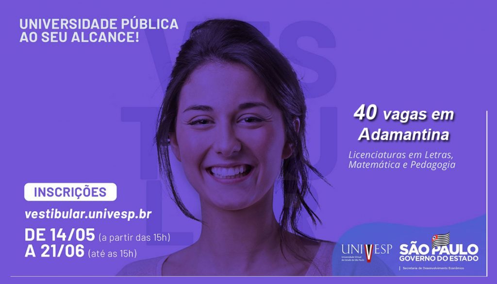 Para mais informações acesse: vestibular.univesp.br ou ligue: 0800-722-7225
