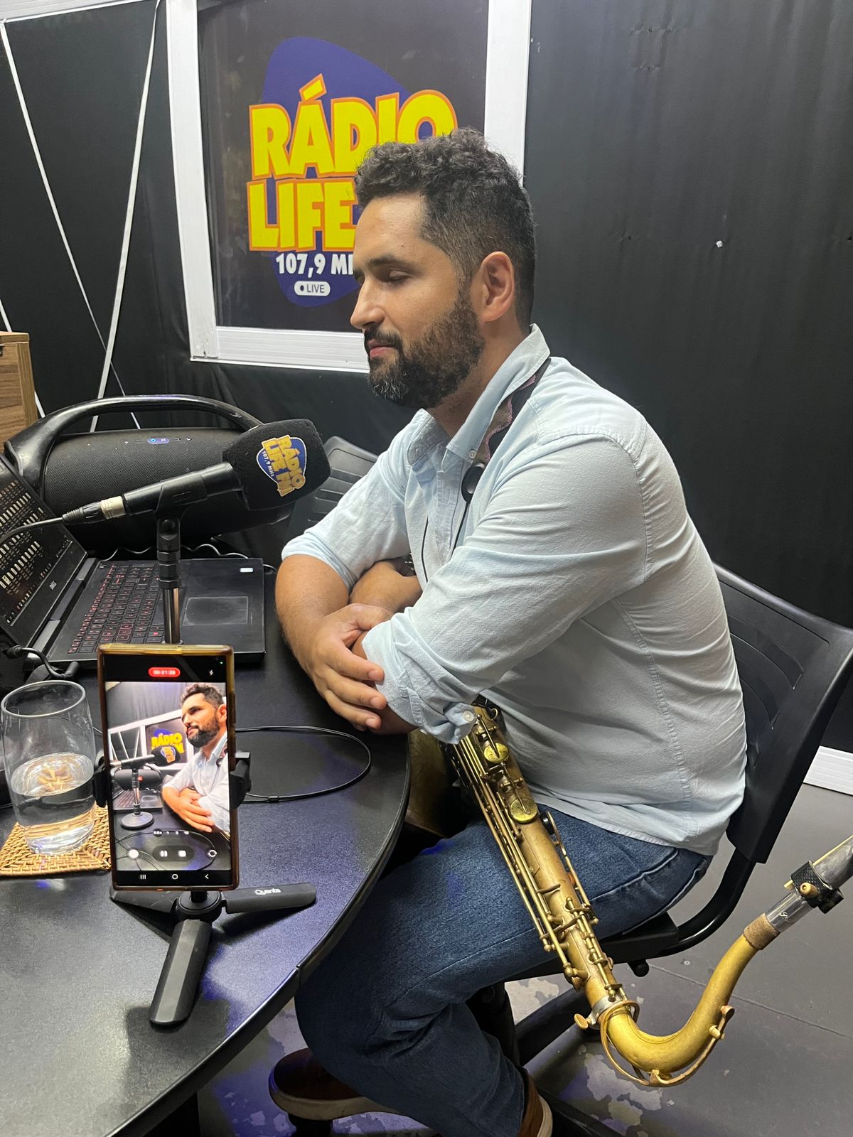 Jader Leandro, Saxofonista entrevistado ao Jornal Do Meio Dia da Life FM na Sexta-feira, 12 de Abril, destacou sua paixão pelo saxofone e como iniciou sua jornada como Saxofonista.
