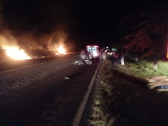 Condutores de veículos que passavam pelo local, informaram que um animal tentava atravessar a rodovia, quando foi atingido pelo motociclista.