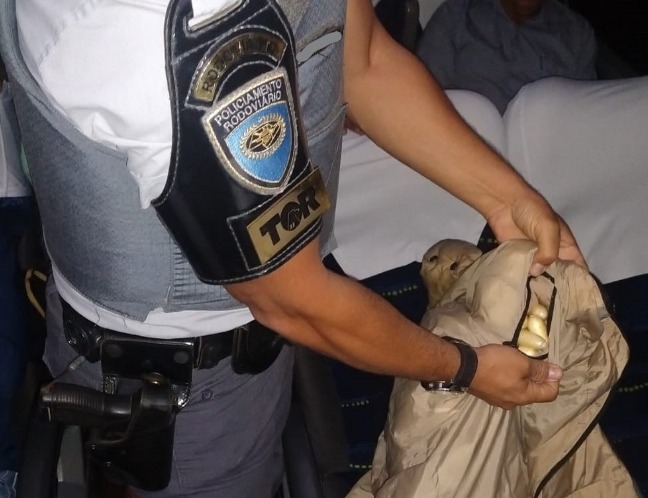 A droga, que era transportada dissimulada em meio a pertences, regiões do corpo e outras ingeridas, tinham como proprietários 02 (dois) homens, de nacionalidade Nigeriana, que seguiam como passageiros de ônibus interestadual, sentido a capital paulista.