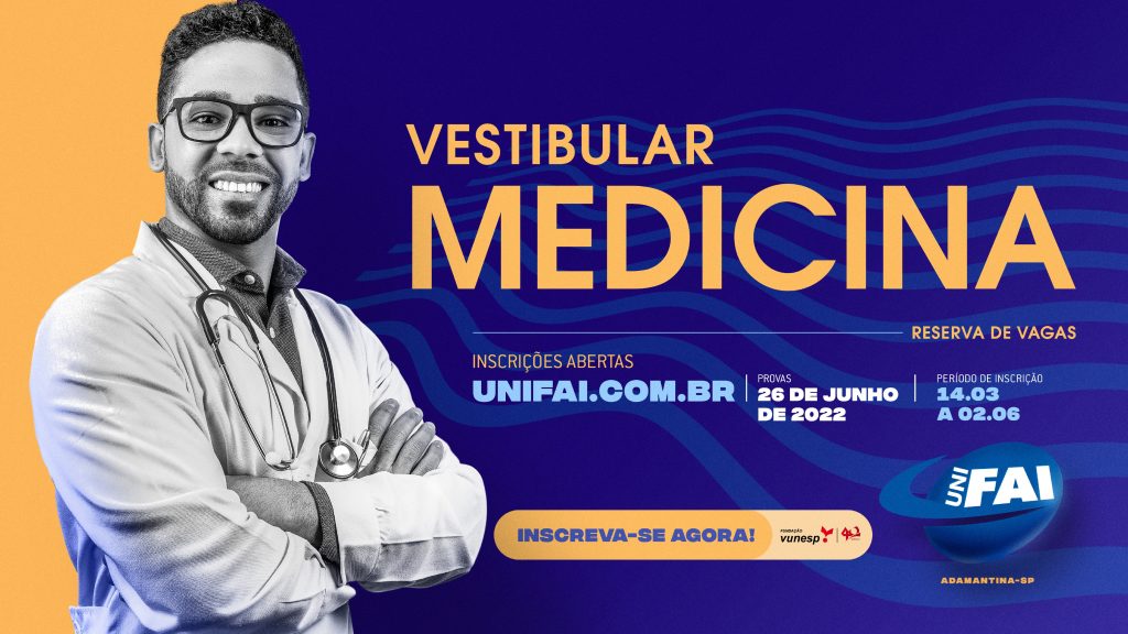 Estão abertas as inscrições para o Vestibular de Medicina – Reserva de Vagas – do Centro Universitário de Adamantina (UniFAI) para ingresso no primeiro semestre do Ano Letivo 2023. As inscrições podem ser efetuadas pelo site da Fundação Vunesp (www.vunesp.com.br), responsável pela organização do Vestibular e pela aplicação das provas.