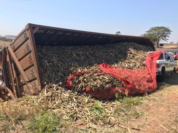 Parte de um conjunto de um bitrem carregado de cana-de-açúcar tombou sobre uma caminhonete por volta das 10h50 da manhã desta terça-feira (10) na Rodovia Comandante João Ribeiro de Barros (SP-294) em Adamantina.
