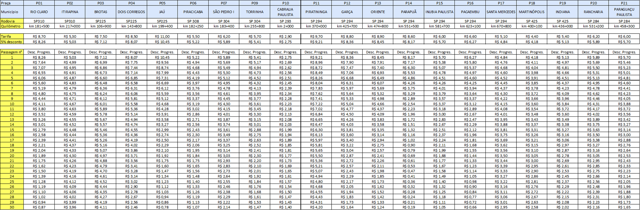 A atualização dos valores foi homologada pela ARTESP – Agência Reguladora de Transportes do Estado de São Paulo, e publicada no Diário Oficial desta terça-feira (31).