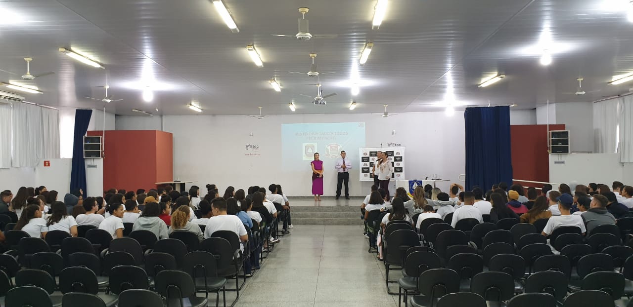 Na manhã desta quarta (08), os policiais civis foram recebidos pela ETEC Eudécio Luiz Vicente, sendo ministrada palestra pelos Excelentíssimos Delegados, Dr. Carlos Roberto Vasconcelos, Seccional de Polícia e Drª Laíza Fernanda Rigatto Andrade, titular do Núcleo Especial Criminal de Adamantina, com a temática “Cidadania e Segurança”.