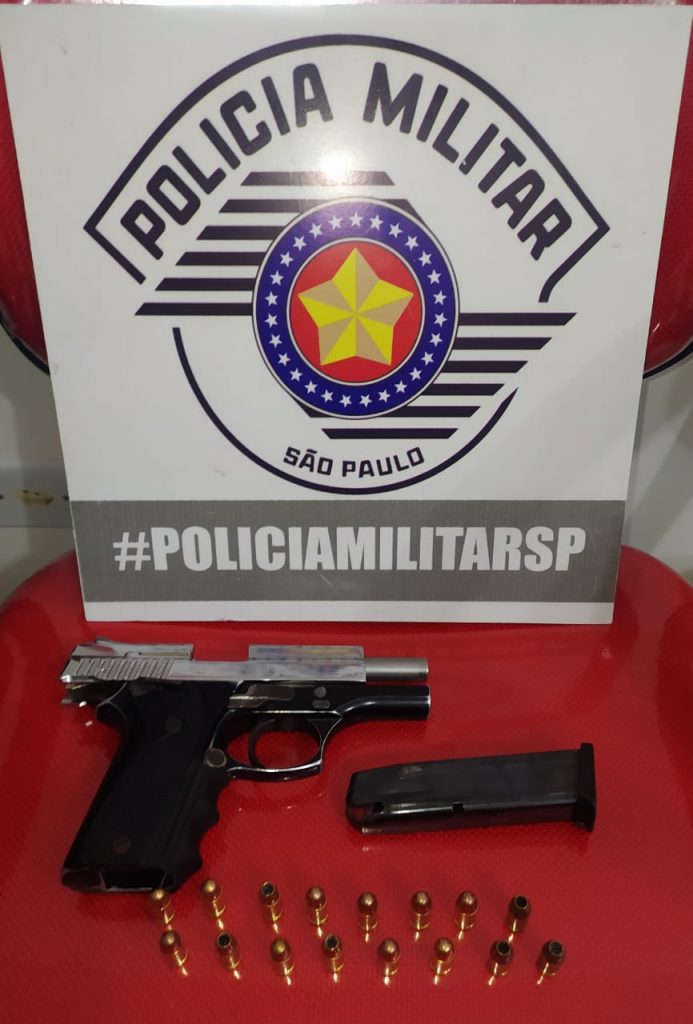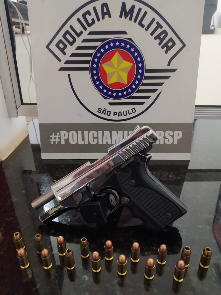 Ao receber ordem de parada, o individuo se virou, tirou uma arma da cintura e empreendendo fuga, dispensou a arma de fogo, uma pistola semiautomática, calibre 380, inoxidada, contendo 16 (dezesseis), munições intactas, estando 01 das munições na câmara e 15 no carregador.