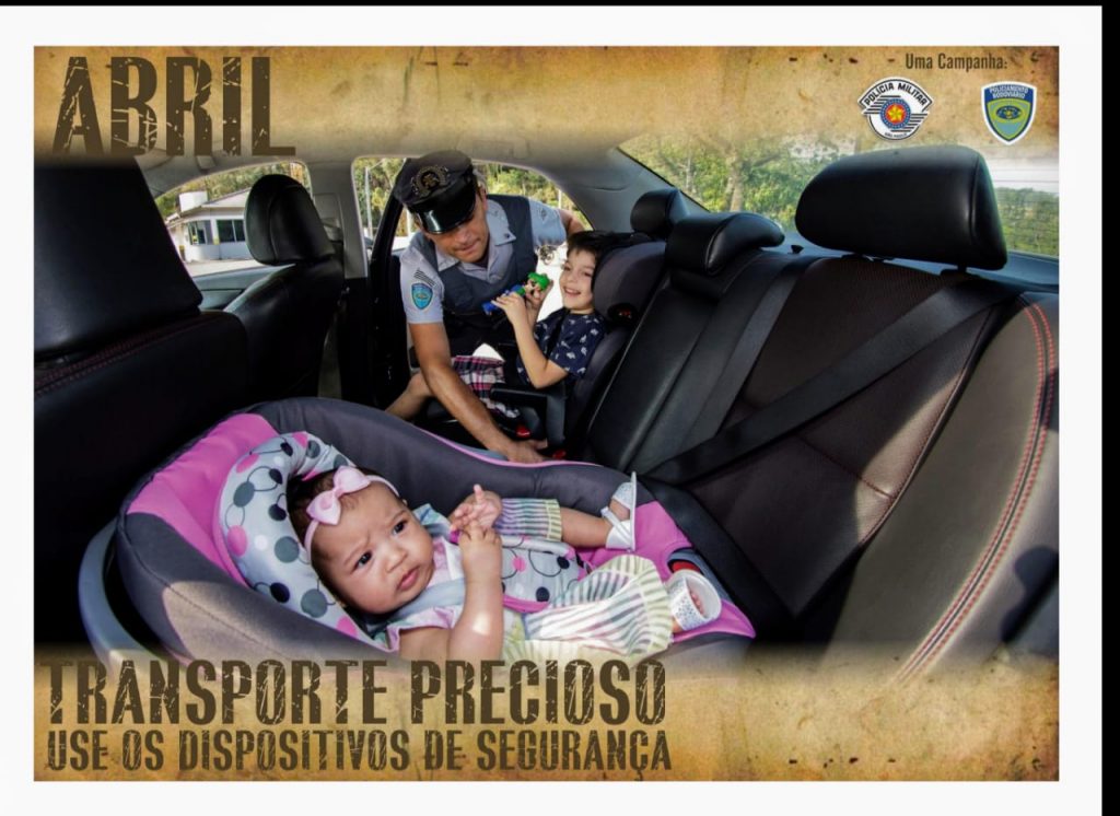 Auxilie as crianças a colocarem o cinto de segurança, certifique-se de que todas estejam utilizando o equipamento, por último, coloque-o também e boa viagem! Crianças com até um ano de idade viaja no “bebê conforto ou conversível”. Deve ser afixado no banco traseiro de forma que a criança fique de costas para o banco dianteiro do veículo.
