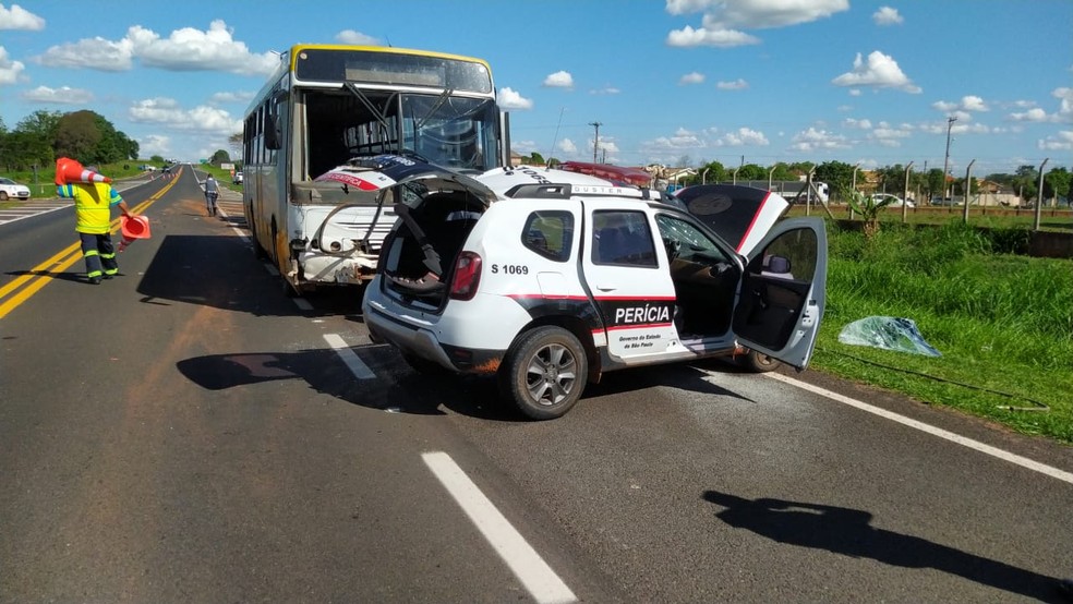 Um acidente de trânsito entre uma viatura da Polícia Científica de Presidente Prudente (SP) e um ônibus deixou uma pessoa morta e outra ferida no km 549 da Rodovia Homero Severo Lins (SP-284), em Martinópolis (SP), na tarde desta quarta-feira (20).