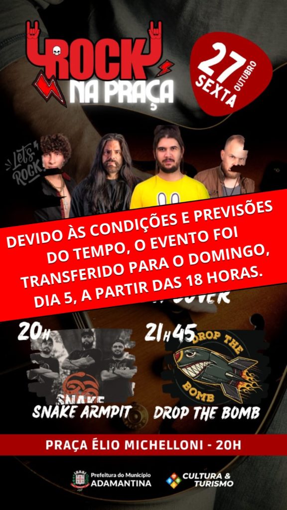Prefeitura de Adamantina informa alteração na data do Rock na Praça