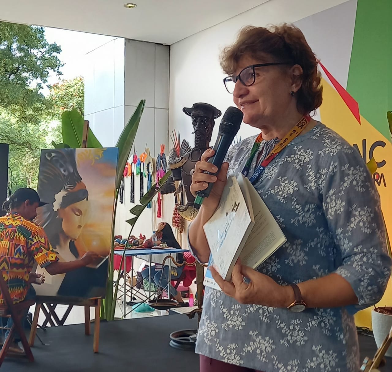 A professora Izabel participou da intensa programação do evento, onde pode fazer a apresentação de dois de seus livros, sendo um deles a 1ª Antologia de Contos, Crônicas e Poemas Regionais da Nova Alta Paulista. Ela conversou também com o secretário de Formação, Livro e Leitura do MinC, Fabiano Piúba, a quem entregou proposta para a literatura regional.
