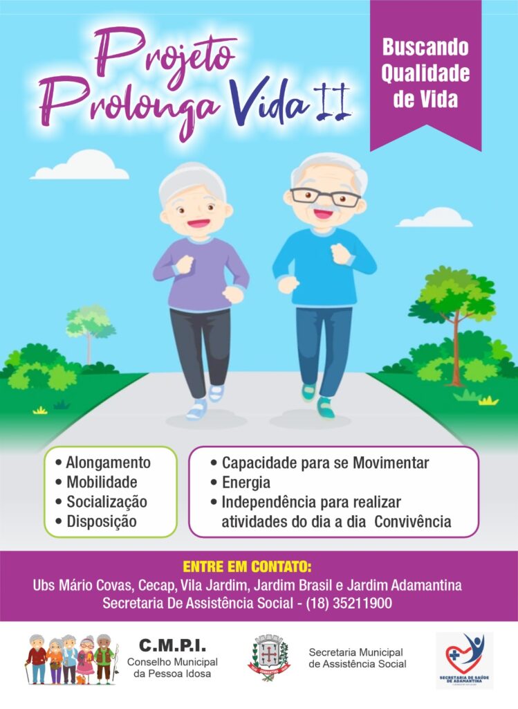 A Prefeitura de Adamantina, por meio da Secretaria de Assistência Social, e do Conselho Municipal da Pessoa Idosa desenvolvem o Projeto Prolonga Vida II que tem como objetivo incentivar e promover a prática da atividade física para idosos a partir de 60 anos e que sejam portadores de doenças crônicas não transmissíveis com comorbidades ou não.