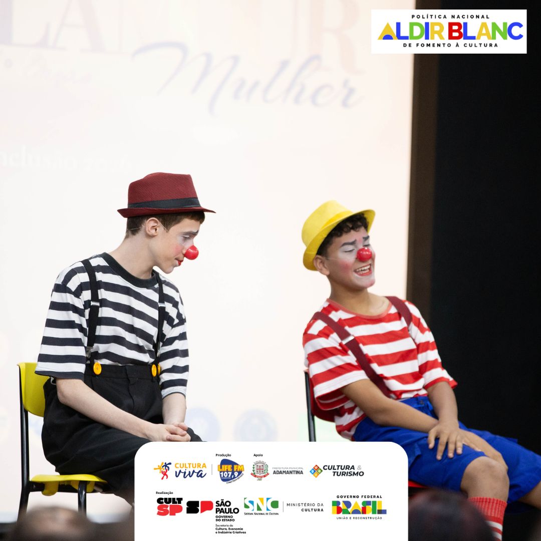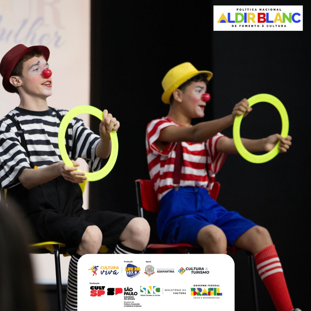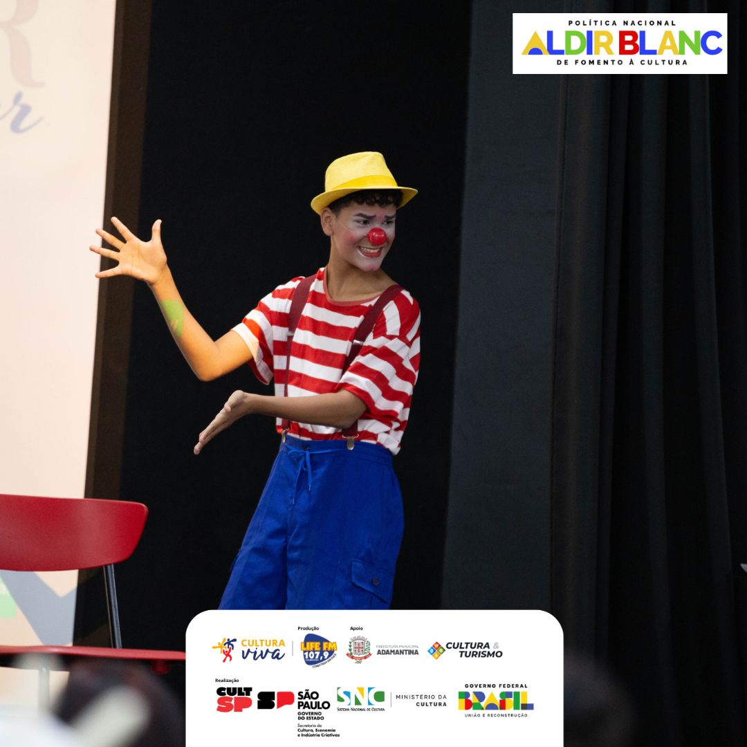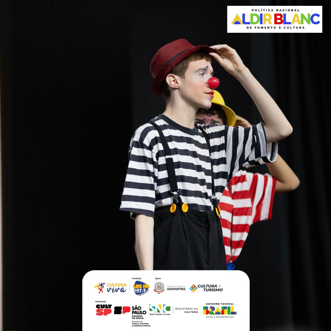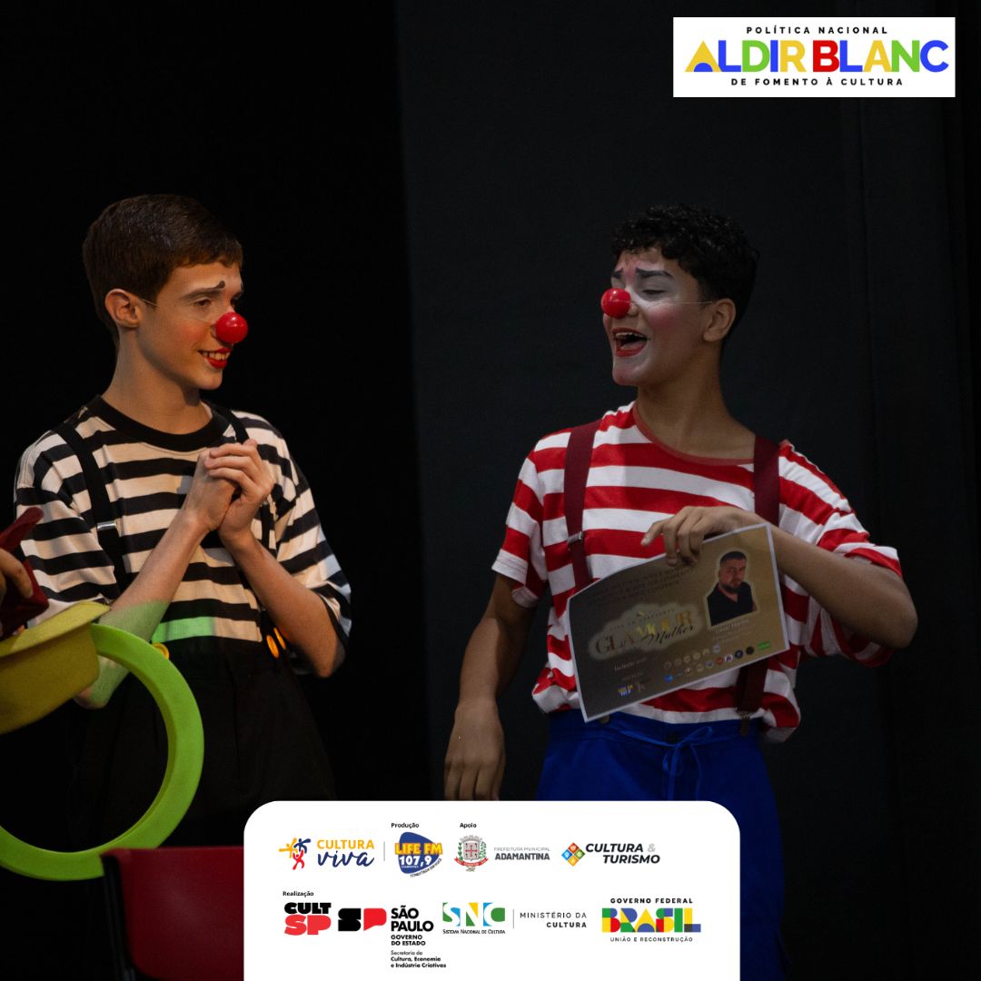 Encerrando as apresentações, a Oficina de Palhaçaria, com o professor César, apresentou “O Encontro”, com os alunos Lucas e Samuel. O momento uniu humor e emoção, destacando o lúdico como ferramenta de desenvolvimento e interação.