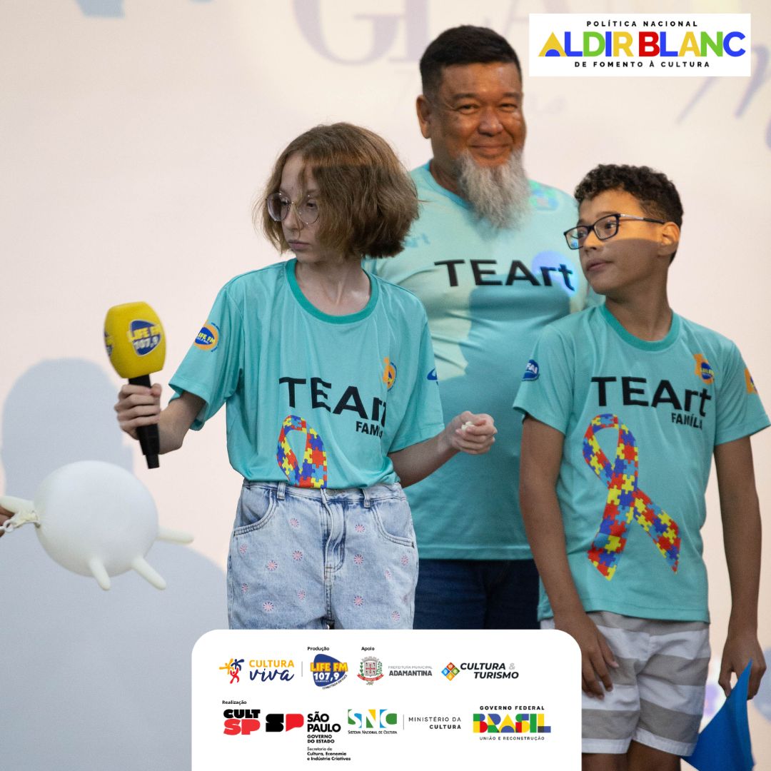 O Projeto TeaArte é fruto da participação da LIFE FM no edital 48/2024 do Programa de Ação Cultural – PROAC da Secretaria de Cultura, Economia e Industria Criativa do Estado de São Paulo, com recursos da Política Nacional Aldir Blanc de Fomento à Cultura (PNAB) do Governo Federal e tem por objetivo desenvolver em parceria com a Secretária de Cultura e Prefeitura Municipal; Diante dos resultados apresentados pelo projeto deixamos o convite aberto a outras famílias para que conheçam e façam parte dessa iniciativa que transforma vidas por meio da arte, do cuidado e da inclusão.