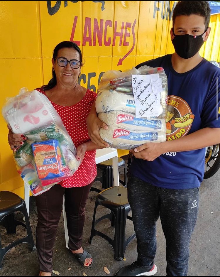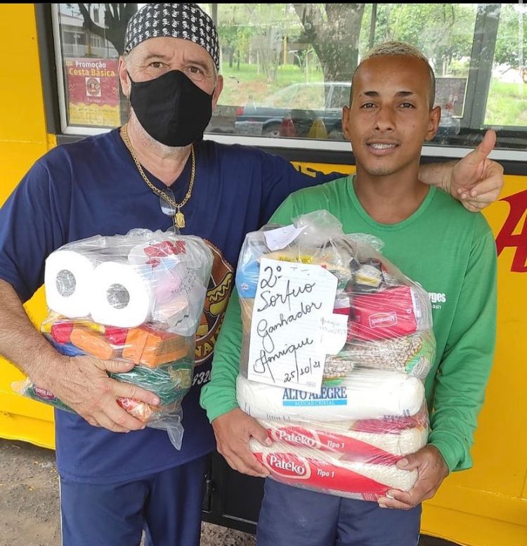 Os contemplados compraram o lanche do Arnaldo, deixaram nome e telefone e concorreram a uma cesta básica, caso não esteja precisando pode doar para quem precisa.