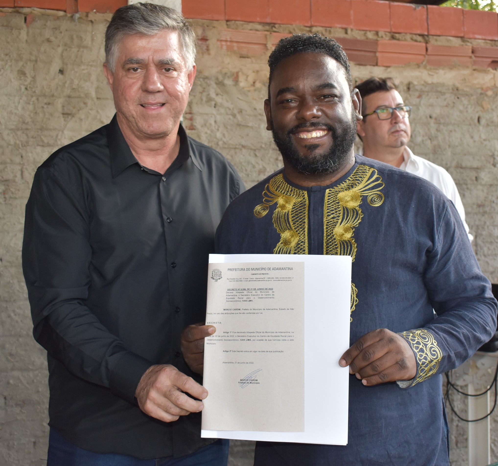O momento teve início com a leitura do decreto 6.556, de 21 de junho de 2022 que declarou Ivan Lima como hóspede oficial do município de Adamantina. Depois disso, Clovis Donizete Fiorentim “Terrinha”, presidente do bairro fez uso da palavra e ressaltou a importância de receber a “Casa Afro”.