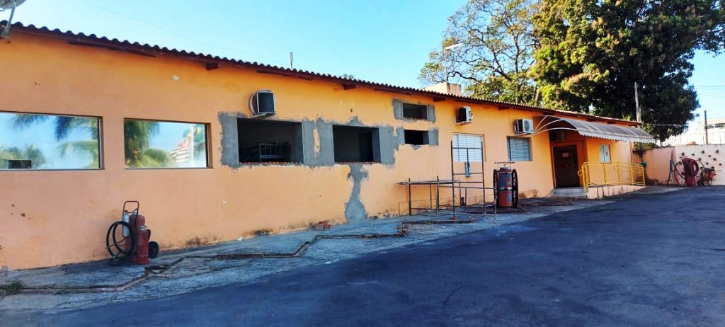 De acordo com a placa instalada na frente da sede do Corpo de Bombeiros de Adamantina, o prédio está passando por uma reforma para melhorar as condições de trabalho na estrutura física.