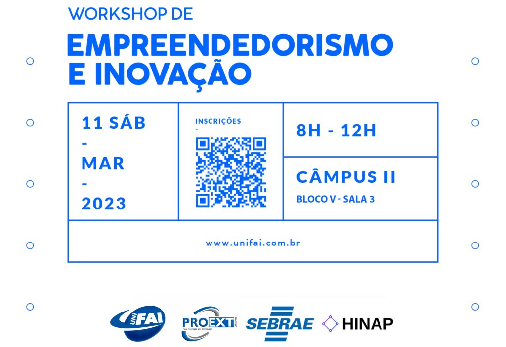 No próximo dia 11 de março, sábado, será realizado o Workshop de Inovação e Empreendedorismo, das 8h às 12 horas, no Câmpus II do Centro Universitário de Adamantina (UniFAI).