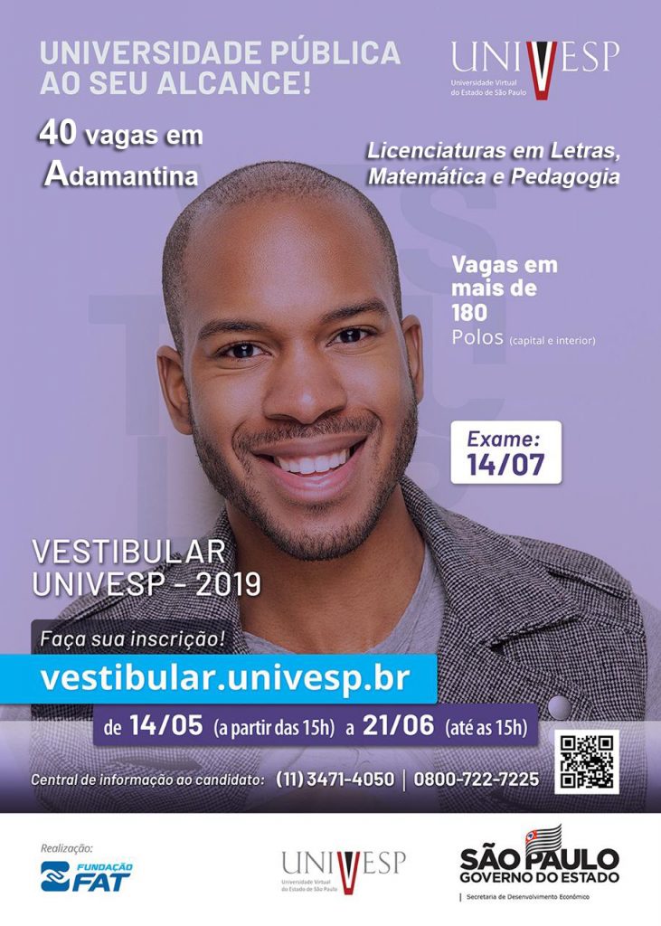 Para mais informações acesse: vestibular.univesp.br ou ligue: 0800-722-7225.